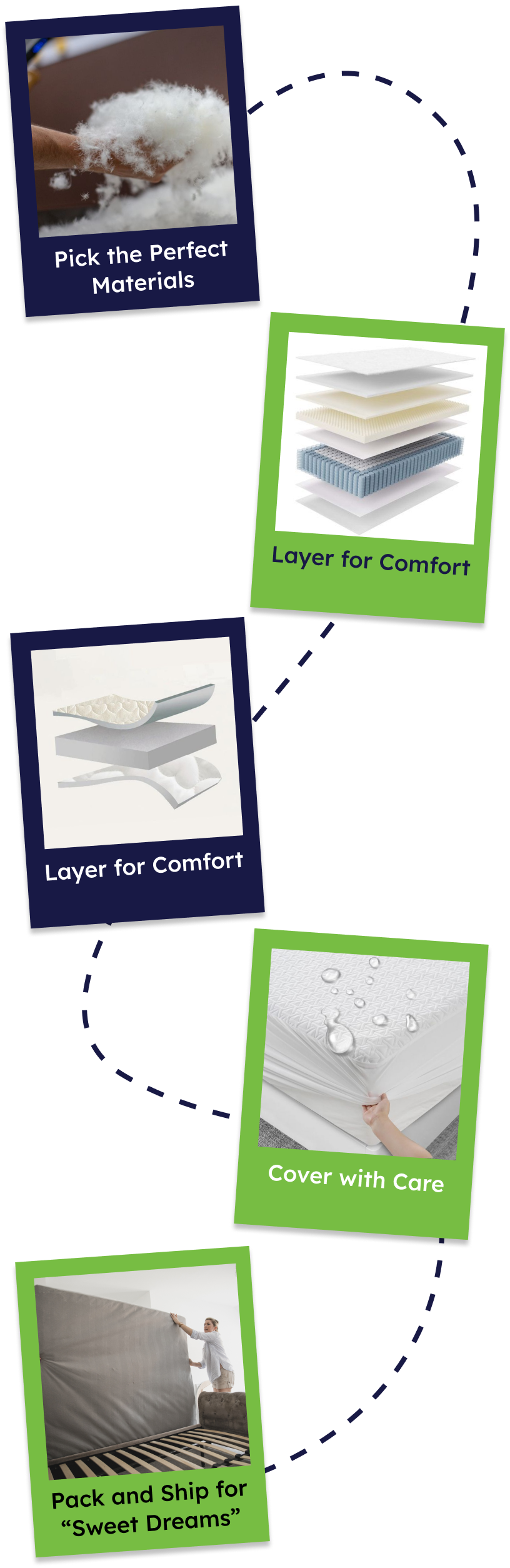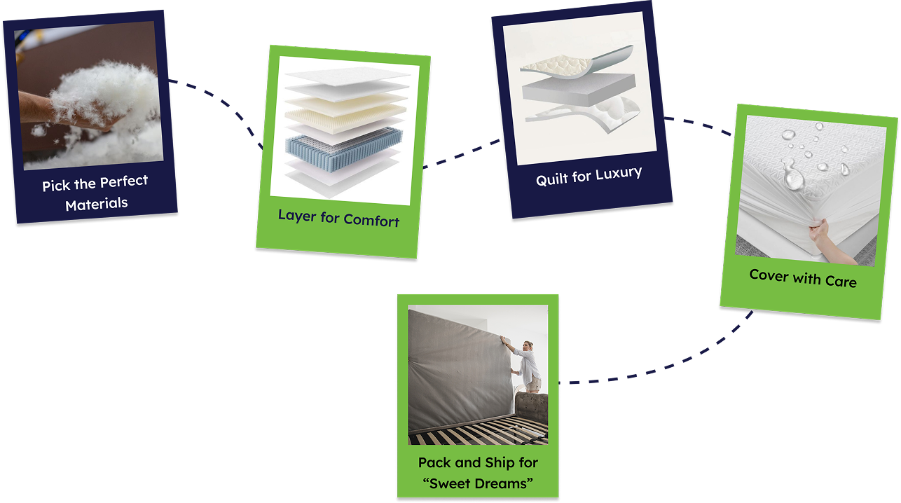 To craft sleep experiences that uplift and inspire. By blending innovative design, sustainable practices, and genuine care, we aim to deliver more than just a mattress – we bring comfort, well-being, and peace of mind to every home.